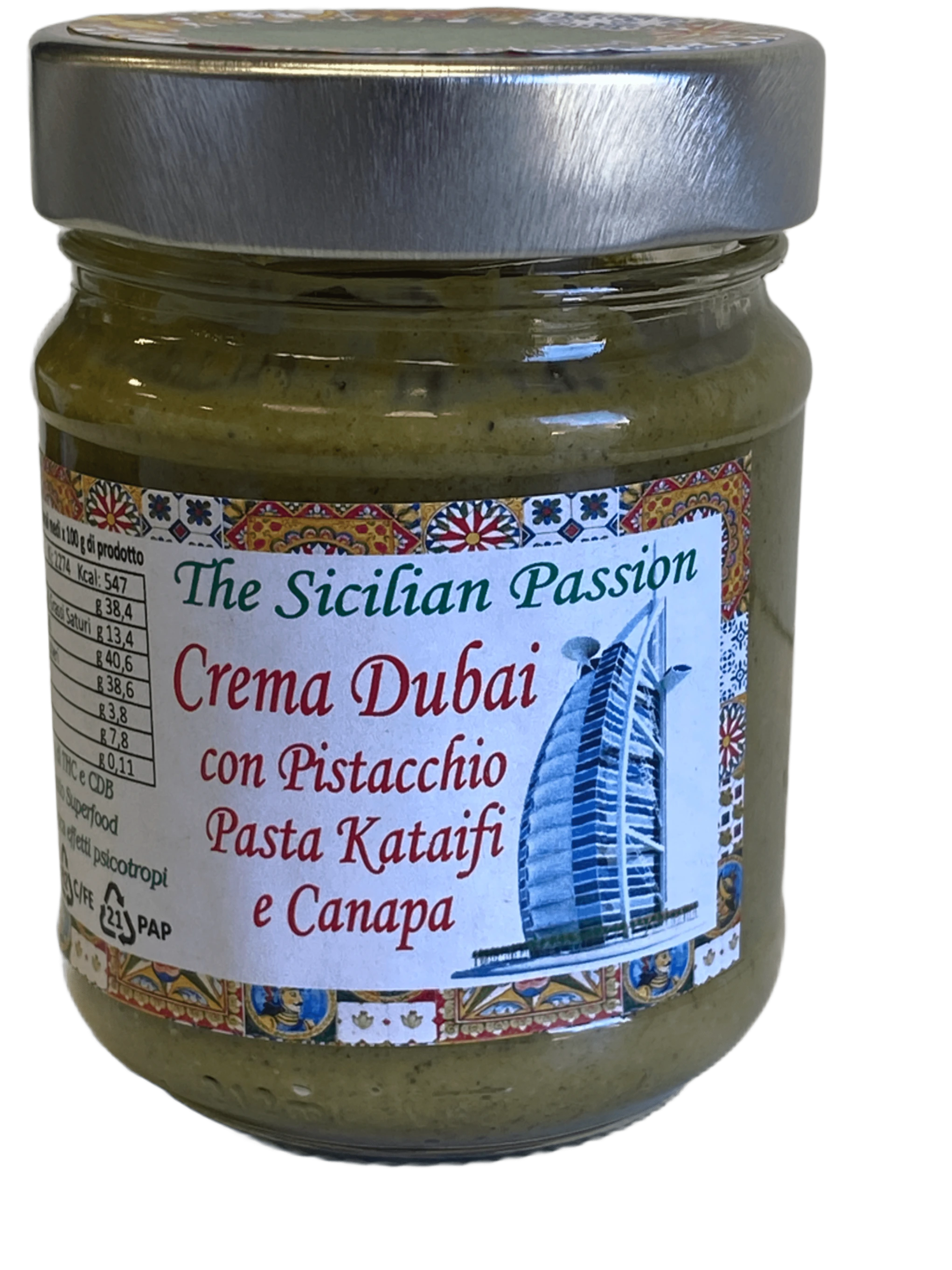 Crema Dubai con pistacchio, Pasta Kataifi e canapa